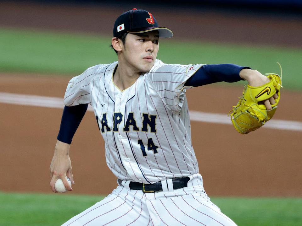MIAMI, FL - MARCH 20: Roki Sasaki #14 of Team Japan pitches during the 2023 World Baseball Classic Semifinal game against Team Mexico at loanDepot Park on March 20, 2023 in Miami, Florida. (Photo by Christopher Pasatieri/Getty Images)