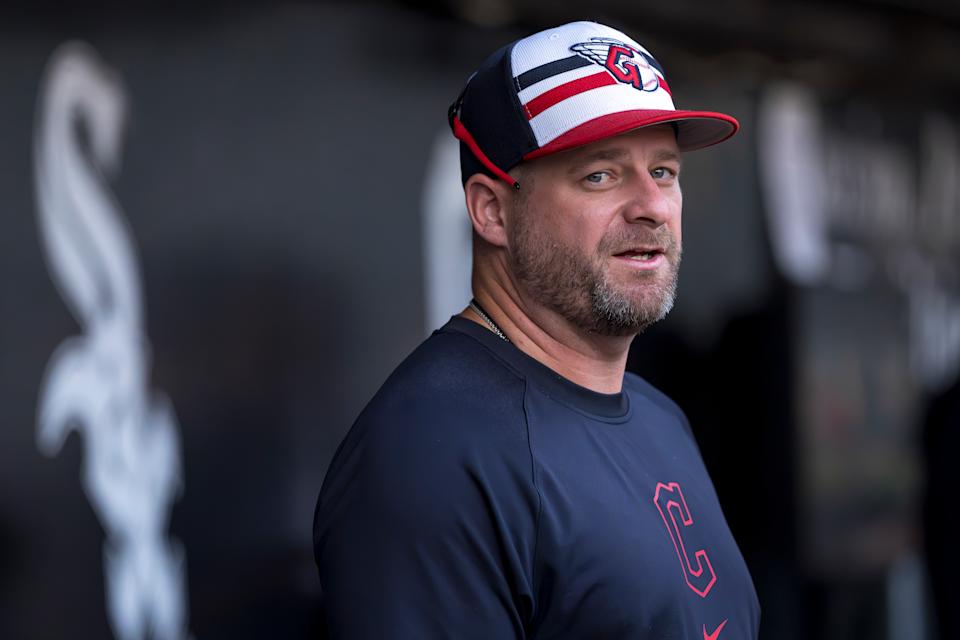 CHICAGO, ILLINOIS - SEPTEMBER 10: Manager Stephen Vogt #12 of the Cleveland Guardians looks on during batting practice before a game against the Chicago White Sox at Guaranteed Rate Field on September 10, 2024 in Chicago, Illinois. (Photo by Matt Dirksen/Getty Images)